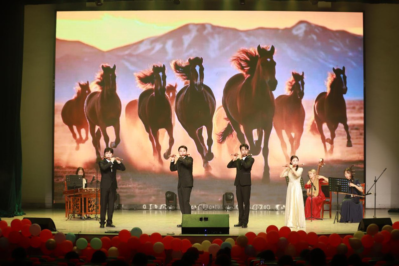乐器合奏《扬鞭催马运粮忙》笛子轻吟,古琴低诉,诠释出中国传统音乐的独特魅力和深厚文化底蕴;歌曲联唱《勇往直前》动感活泼,表达了青年学子对美好未来的无限憧憬;武术表演《武气耀乾坤》刚劲有力,龙腾虎跃间尽显中华武术的深厚底蕴与独特魅力;民族舞《傣家的女儿傣家的雨》舞姿灵动,婀娜美丽,彰显出浓厚的民族风情和独特的艺术魅力;体育学院新生节目《拉丁风暴》热力四射,将体育的动感与拉丁舞的热情完美融合,展现出青年人无限的活力激情;朗诵《可爱的中国》以深情而饱满的语调,热情洋溢地歌颂了伟大祖国的壮丽山河与辉煌成就,深切地表达了青年学生对祖国深沉的爱;舞蹈《异域梦境》、《一起向未来》融合动感的节拍与欢快的音乐,活力满满,热情洋溢。