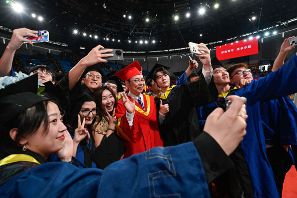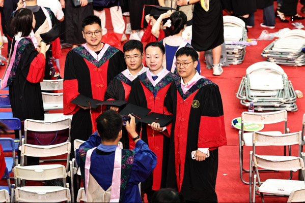 5月31日,武汉工程大学毕业季,身着学士服的同学们相聚校园空地,以蓝天为幕,记录青春同行的珍贵时刻。画面里是同班级的好友,大学时光里,他们一起为学业奋斗、在校园漫步谈天,毕业之际,用背影与比耶的姿势,定格这份纯粹的同窗情谊。