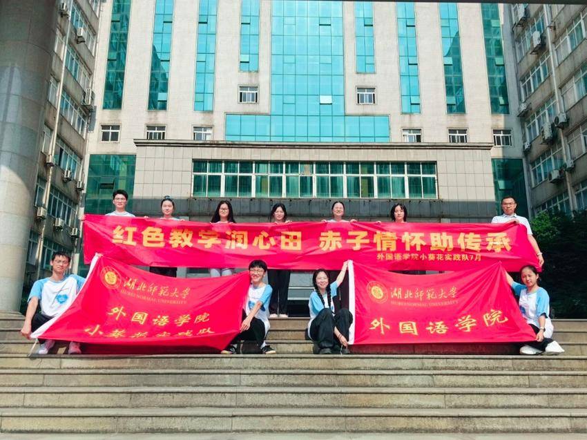 湖北日报客户端讯 晨光初绽,湖北师范大学外国语学院“小葵花”暑期实践队的志愿者们在教育大楼前整装待发。浅色的队服与鲜红的旗织交相辉映,像是他们正欲以青春的活力投身志愿之中。“红色教学润心田,赤子情怀助传承”的横幅在艳阳下生辉。相机快门一瞬定格,意味着这支由专业师范学子组成的队伍,正式开启了为期一月的东港社区“爱心托管班”志愿服务。