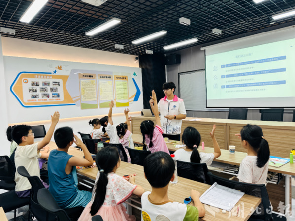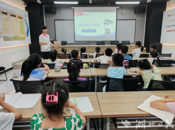 湖北日报客户端讯(通讯员黄瑾雯)7月11日,湖北师范大学经济管理与法学院青湖法雨实践队联合黄石港区万达社区走进暑期学堂,开展《中华人民共和国预防未成年人犯罪法》专题普法课堂,为孩子们送上一堂生动的“法治必修课”。