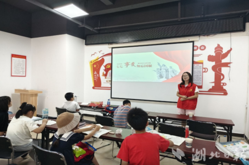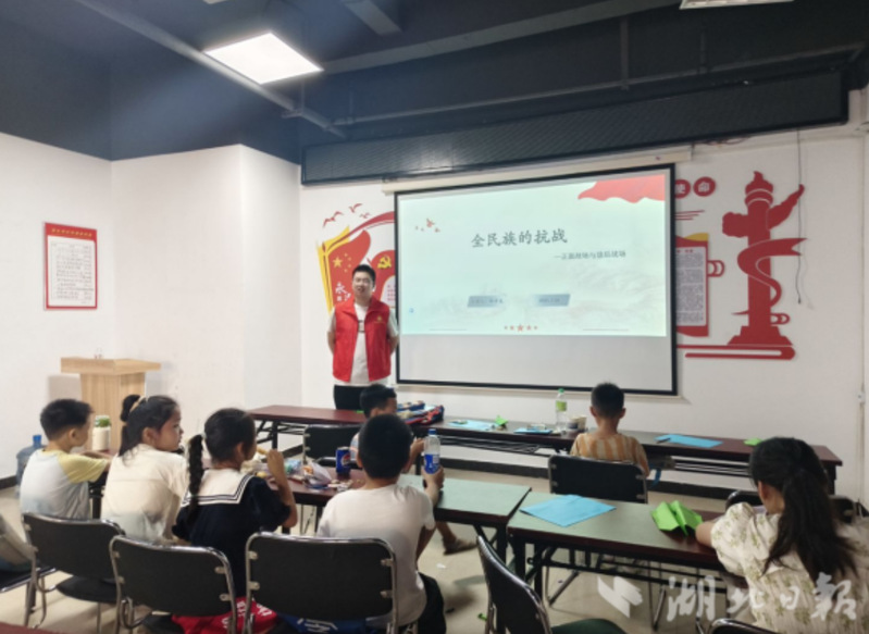 湖北日报客户端讯(通讯员吴佳丽) 7月14日,湖北师范大学鸿骐宣讲团成员姚依伊、邱孝龙先后走进黄石港万达社区,分别围绕抗战历史关键节点开展主题宣讲,为社区孩子们带来了两堂历史课。