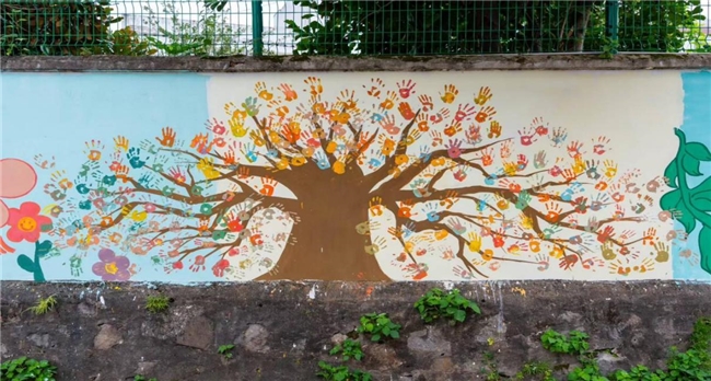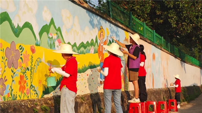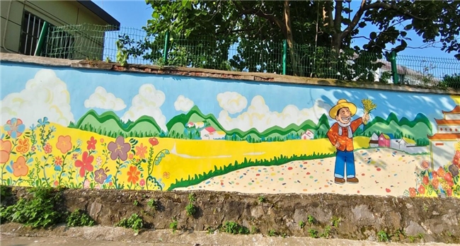 课堂之外,志愿者们顶着烈日,早出晚归,以画笔为媒,为乡村增添亮丽色彩。他们运用专业技法,将原本素净的白墙化作了一幅幅生动绚丽的画卷。色彩缤纷的图案跃然墙上,原本单调的围墙焕发出勃勃生机,成为乡村一道独特的风景线。村民们纷纷驻足欣赏,赞叹不已,艺术墙绘不仅美化了乡村环境,更传递了向上向善的文明乡风和淳朴民风,也反映了当地美丽乡村的发展新貌。