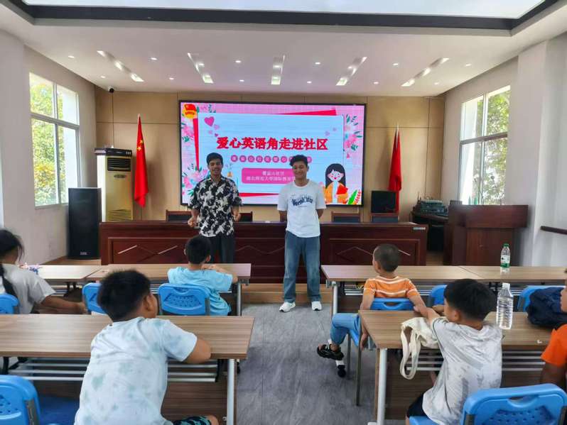 7月25日下午,由黄石港区残联、湖北师范大学国际教育学院联合主办,黄石港区覆盆山社区残协承办的 “爱心英语角・助残暖童心” 志愿活动在覆盆山社区温情开展。湖北师范大学国际教育学院辅导员孙悦带领 5 名留学生志愿者走进社区,不仅为社区孩童(含残疾儿童家庭子女)带来了生动有趣的英语互动课堂,更以公益助残为底色,用跨国爱心为社区儿童家庭送去了暖心陪伴。