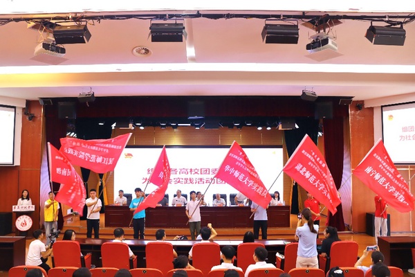 “从特战队员到师范生,我深知教育也需如红军般协同作战。”湖北师范大学学生蔡乐媛的分享道出了学子心声。仪式现场,组团高校团委负责人为实践团队授旗,百余名学子整装待发,将在遵义开展调研走访、支教服务等活动。