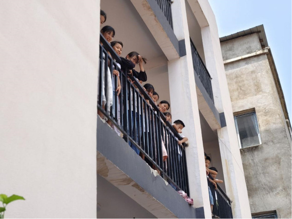 孩子们目送老师们离开