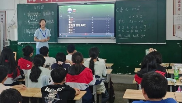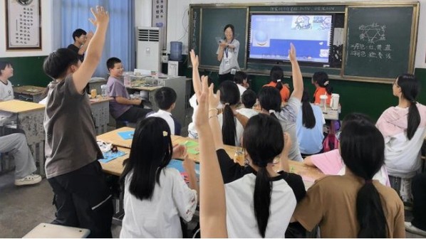 盛夏时节,阳新县排市镇初级中学的校园里活力涌动。湖北师范大学星火筑梦实践队在此开展的为期三周的托管班中,不仅高质量完成了学业辅导的系列课程,还通过心理健康、卫生健康、艺术、科学创新等活动课程为七至九年级学生搭建了多元成长平台。其中,艺术课程作为实践队精心打造的特色板块,以《关于全面加强和改进新时代学校美育工作的意见》为指引,秉持“以美育人、以文化人”的设计思路,围绕“感知美—创造美—鉴赏美”的递进式培养路径,采用“成长树”积分制评选“创意之星”的评价方式,让同学们在动手实践与文化浸润中提升审美素养,涵养人文情怀,成为托管班中一道亮眼的风景线。