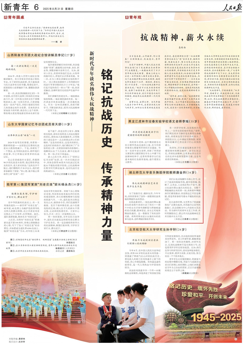 抗日战争时期,文艺界为了民族解放而广泛联合起来,共同进行以宣传民族救亡、抗击侵略为中心内容的文艺活动。作为新时代的青年文艺工作者,我时常激励自己,要让伟大抗战精神在艺术实践中生生不息。(本报记者吴君采访整理)