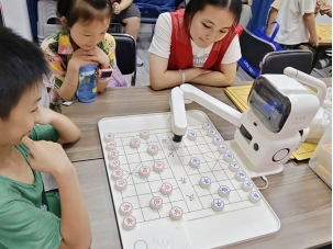 志愿者杨涵带小朋友体验智能象棋 朱芷珊 供图