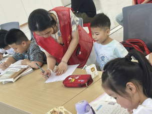 为解决社区家庭暑假子女看护问题,湖北师范大学向阳花护航队7月10日起在黄石西塞山石料山社区开展了为期三周的暑假爱心托管班,为孩子们提供作业辅导、安全教育、知识科普和益智活动等服务。志愿者们耐心辅导作业,帮助孩子们提升学习专注度和解题能力;通过情景短片、漫画手册和角色扮演,开展防霸凌教育,教会孩子们辨别和应对校园欺凌;结合真实案例和互动演示,进行防溺水安全教育,强调“六不准”原则和自救方法。三周里,托管班以作业辅导夯学业、以安全教育护生命、以法治教育强意识、以传统文化育审美,让孩子假期生活更“有料”。(供稿人:祝淼洋)