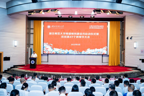荆楚网(湖北日报网)讯(记者 吕鉴蕾 通讯员 黎哲、程欣)9月9日,在第41个教师节来临之际,湖北师范大学在教育大楼报告厅举行师德师风建设月启动仪式暨庆祝第41个教师节大会。全体在校校领导、学校副处级以上干部及师生代表共同参会。大会由该校党委副书记、校长雷儒金主持。