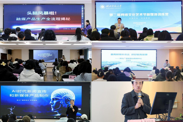 本网讯 12月11日至20日,湖北师范大学第二届新媒体训练营成功举办。本次训练营由党委宣传部、马克思主义学院精心组织,是学校第二届网络文化节的重要组成部分。为期十天的培训,为全校学生宣传骨干带来了一场内容丰富、前沿实用的新媒体知识盛宴。系列课程环环相扣、层层递进,系统覆盖了从内容策划、采编制作到视觉表达、IP打造的全链条技能,有效提升了学员们的融媒体创作能力。