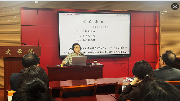 本网讯 春晖映照,薪火相传。4月2日下午,校关工委副主任、丹心银龄学者工作室团队成员吴瑞霞教授应邀走进文学院,以《面向未来》为题,为文学院青年教师及学者带来专题分享。这是银龄学者“讲院史谈湖师精神”系列活动在2026年的首场活动。