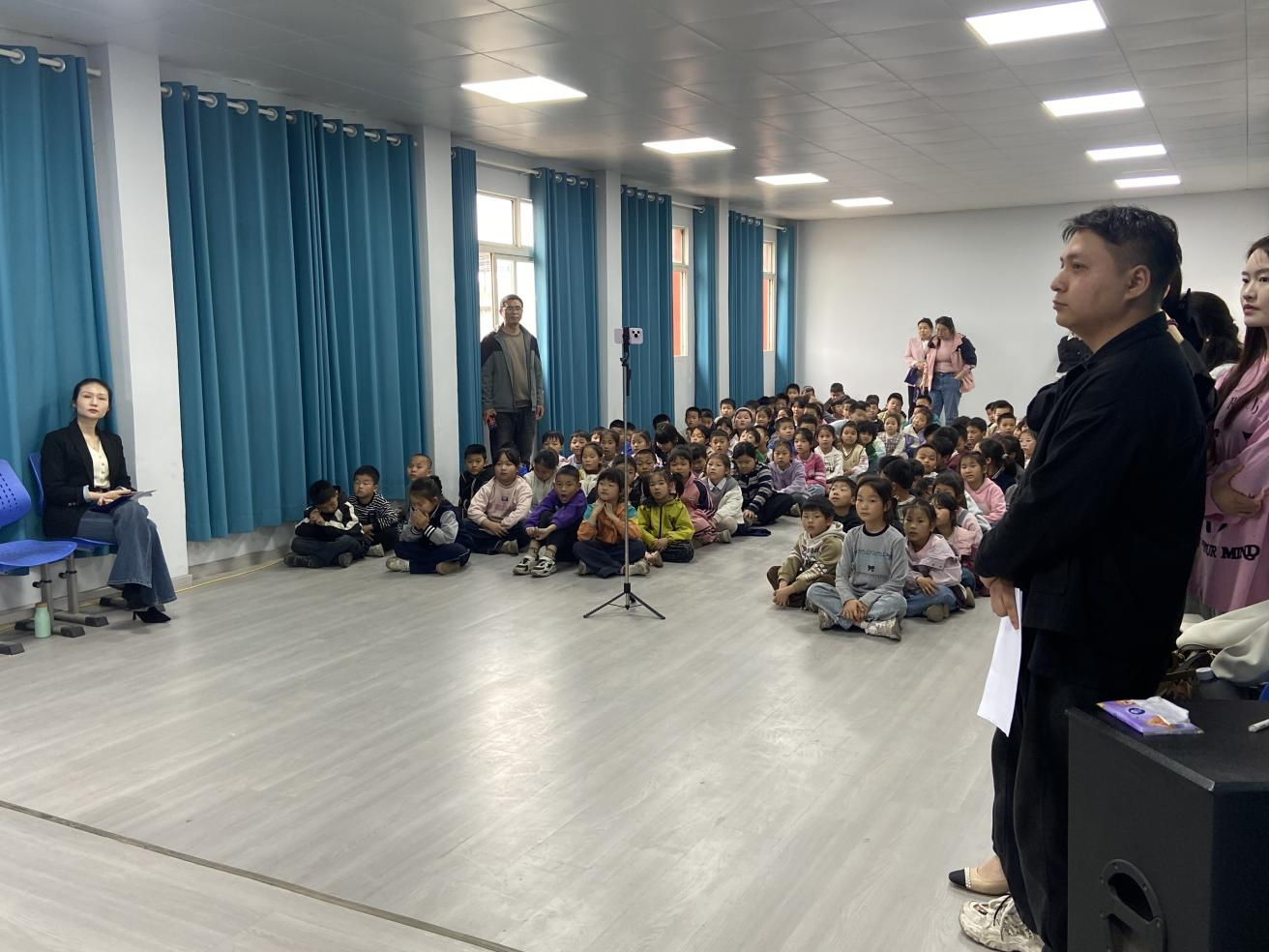 六房小学地处乡村,办学条件相对简朴,学校暂无专职音乐教师与常规音乐课。尽管如此,孩子们仍对音乐满怀热忱。当天,该校一至三年级学生全程观看了演出,在高校师生的引导下近距离感受音乐魅力。