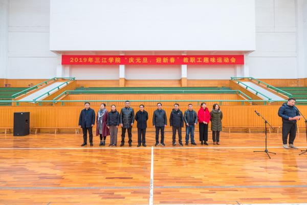 12月27日下午, 由校工会主办,体育部承办的“庆元旦,迎新春”三江学院教职工趣味运动会在三江学院体育馆室内篮球场举行。校理事长、党委书记丛懋林,校长吴中江、党委常务副书记、副校长周更生,副校长仇存进、校长助理王勇、工会主席杨业琴、体育部主任谢霞、工会副主席张军、工会委员等出席了趣味运动会开幕式,开幕式由体育部权国睿老师主持。