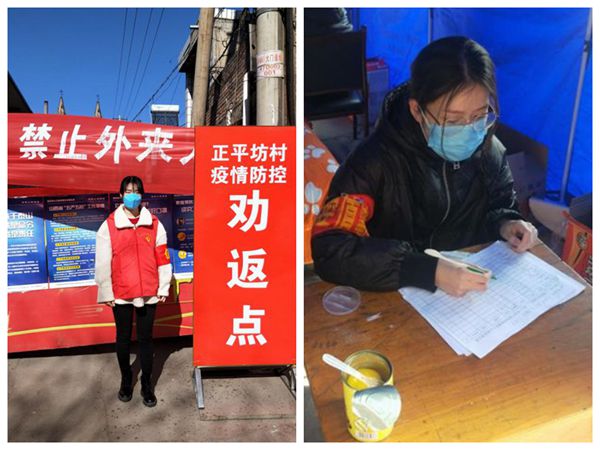 17级新闻学赵泽青同学在山西省临汾市侯马市北西庄参与疫情防控
