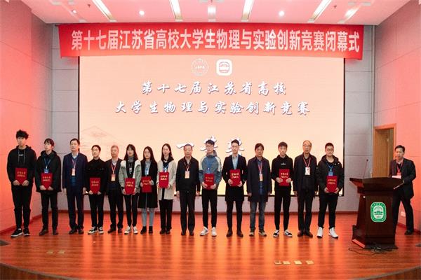 江苏省高校第十七届大学生物理与实验创新竞赛由江苏省物理学会、江苏省高校大学生物理与实验创新竞赛组织委员会主办,经过网评初赛,决赛在南京师范大学仙林校区举行,来自全省38所高校的392项作品(含论文类、实验类、企业创新创业类)参加本次比赛,共评出一等奖32项,二等奖79项,三等奖123项,优秀奖20项。