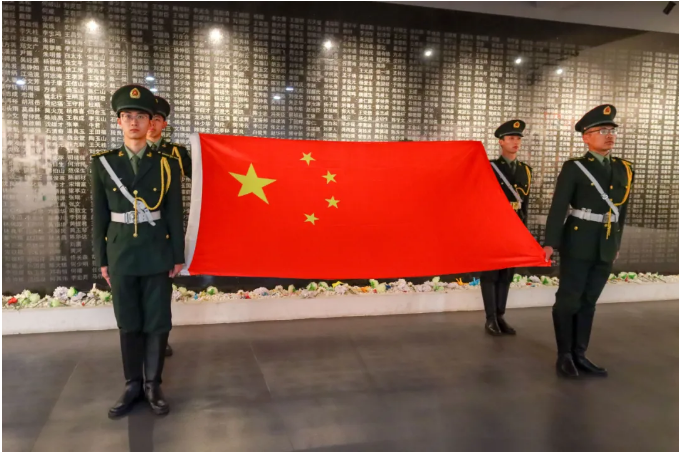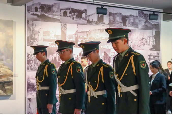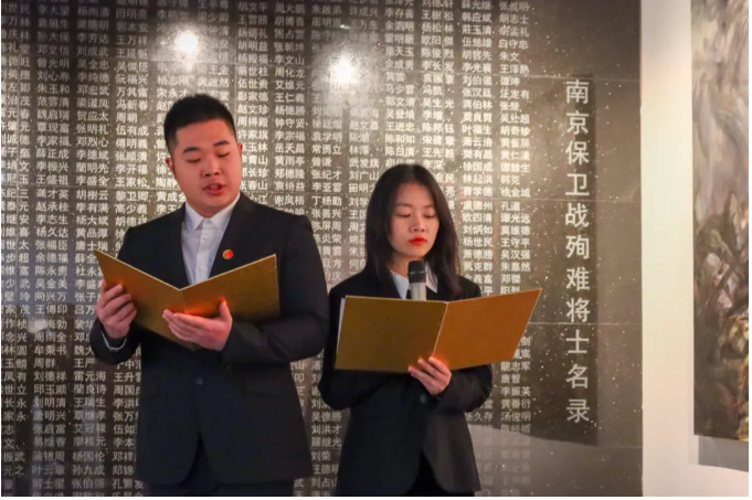 “今日大家带着沉重的心情汇集在庄严肃穆的南京民间抗日战争博物馆,沉痛悼念为国捐躯的英雄烈士和所有为中华民族解放事业做出贡献的革命先辈,真诚地表达我们对先烈的无比敬仰和缅怀之情。”