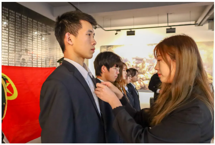 而作为带领新团员宣誓的老团员,陈同学觉得此次活动意义非凡,不仅让我校青年学生对一二九抗日救忘运动有更深切的感悟,也培养了大家的的家国情怀。正如宣誓词所讲:不忘初心,牢记使命。陈同学认为我们应该以成为新中国新时代的新主人为目标,树立远大理想,担当时代责任,将小我融入大我,涵养家国情怀。