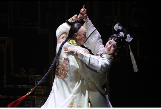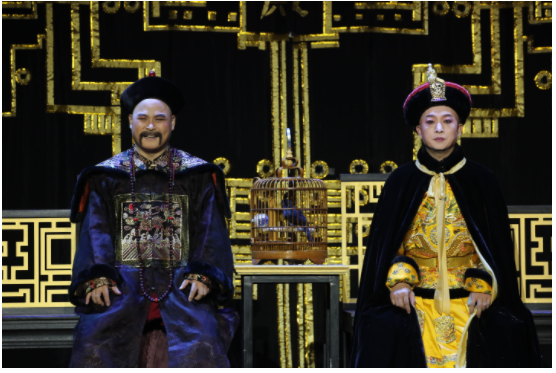 光绪与梦中的珍妃,跳起华尔兹,舞台上响起那一时期来自流行音乐《爱的礼赞》,只不过演奏的乐器从提琴变成京胡,当字幕上打出“西皮圆舞曲”,观众席中发出一阵惊诧的轻叹,随即被由衷的喝彩取代。