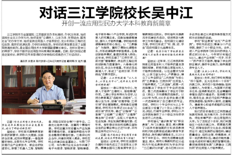 对话三江学院校长吴中江——开创一流应用型民办大学本科教育新篇章