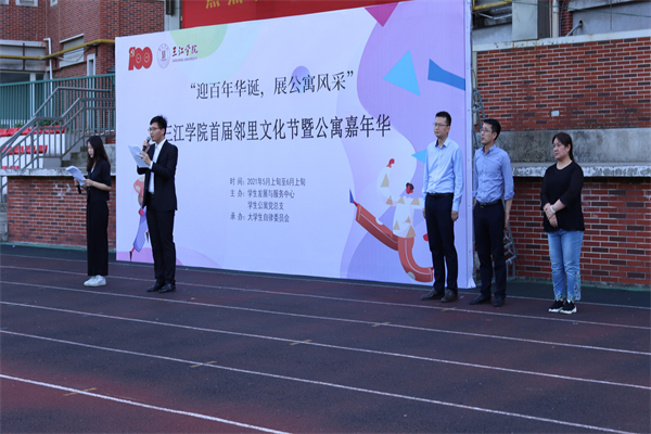 为庆祝中国共产党成立100周年,更好地丰富我校学生公寓文化建设,营造舒适、温馨的公寓环境,5月9日下午,学生发展与服务中心于足球场举办“迎百年华诞,展公寓风采”——三江学院首届邻里文化节开幕式暨公寓嘉年华活动。学生发展与服务中心相关负责同志、二级学院辅导员、铁心桥校区学生公寓全体管理员、大学生自律委员会全体成员以及部分学生代表参加了活动开幕式。
