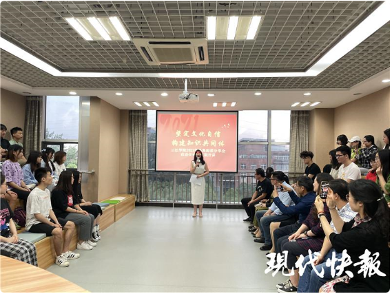 据介绍,经典阅读分享会为三江学院图书馆精心组织,团委协同合作,校通识教育工作委员会大力支持的校园文化建设系列活动,每月分上、中、下旬开展三期,分为红色经典、社科类经典、自科类经典三个内容模块,兼顾不同学科体系,采取线下现场分享与线上网络直播的形式,多维度开展阅读分享会活动,邀请校内外专家学者,以及不同专业的学生在读书空间分享自己对经典文化的感悟与体会。