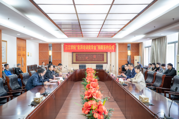 何广会介绍了宏湃培训有限公司的业务等基本情况。他说非常高兴在三江学院设立奖学金,感谢学校支持公司的发展。他说今后要加大全国市场布局,希望双方以此为契机,深化全方位校企合作。