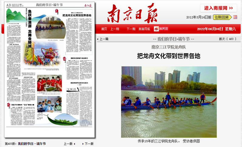 作为两人的启蒙教练,南京三江学院龙舟队教练周会俭,当天在他组建的“龙舟校友群”里,收到了全国各地乃至国外龙舟队员们的端午祝福,他们纷纷发来自己当天在各地赛龙舟的“实况直播”。“今年上半年,我们学校把划龙舟列入了体育选修课,学生们的选课热情很高,大家都发自内心地热爱这项历史悠久的传统运动。”周会俭说。