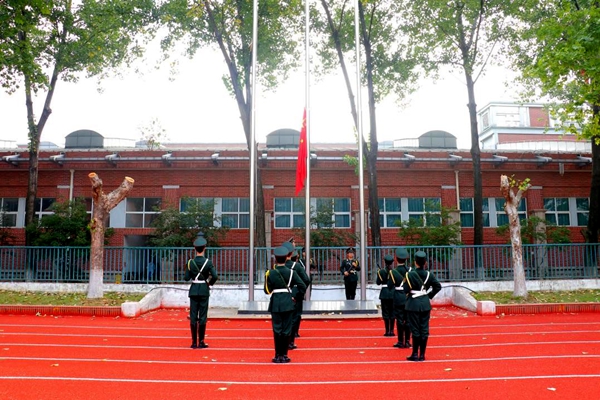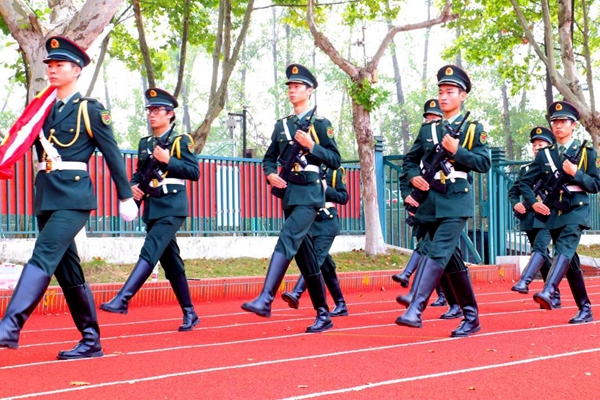 校国旗队迈着整齐的步伐向升旗台行进