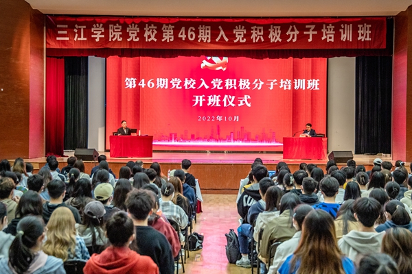 10月28日,我校党校第46期入党积极分子培训班在三江会堂顺利开班。校党委书记封超年参加了开班仪式,并为全体入党积极分子讲授了第一课——《用党员标准要求自己,做新时代优秀青年》。校党委常务副书记、副校长、党校校长周更生主持开班仪式。党委组织部负责同志及第46期党校全体学员参加了开班仪式和培训。