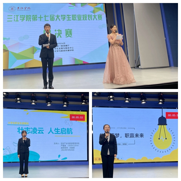 10月25日晚,三江学院第十七届职业生涯规划大赛总决赛在文学与新闻传播学院演播厅举办。