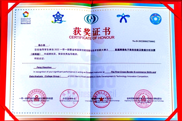 为推动金砖国家间教育合作、技能开发和人文交流活动,共同推进金砖及一带一路国家技能发展与技术创新合作取得更大发展。中国赛区“一带一路暨金砖国家技能发展与技术创新大赛”之“跨境电子商务技能及数据分析”于2022年11月15日至11月16日在线上举行了全国决赛(本科组)。经过初赛、复赛的激烈比拼与角逐,来自我校法商学院互联网金融专业的孙雨航、电子商务及法律专业的张刘美和投资学专业的陈嘉新3位同学组成的队伍在中国赛区决赛中荣获一等奖的第二名(团队成员排名不分先后),成功晋级国际赛。此外,由互联网金融专业的王浩屹、臧年欣和魏晨(团队成员排名不分先后)组成的团队在决赛中荣获三等奖;冯小舟老师获得优秀指导教师称号;三江学院获得最佳组织奖(共10所高校获此殊荣)。