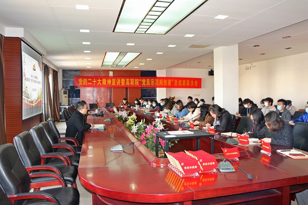 为深入学习宣传贯彻党的二十大精神,根据学校《关于深入学习宣传贯彻党的二十大精神的通知》要求,3月7日下午,高职院组织开展党的二十大精神校园宣讲活动。马克思主义学院王翠英老师作了主题为《全面建设社会主义现代化国家的行动纲领》学习党的二十大精神专题宣讲,高职院师生党员、发展对象、入党积极分子及学生骨干代表等近40人与会,认真听取了报告。