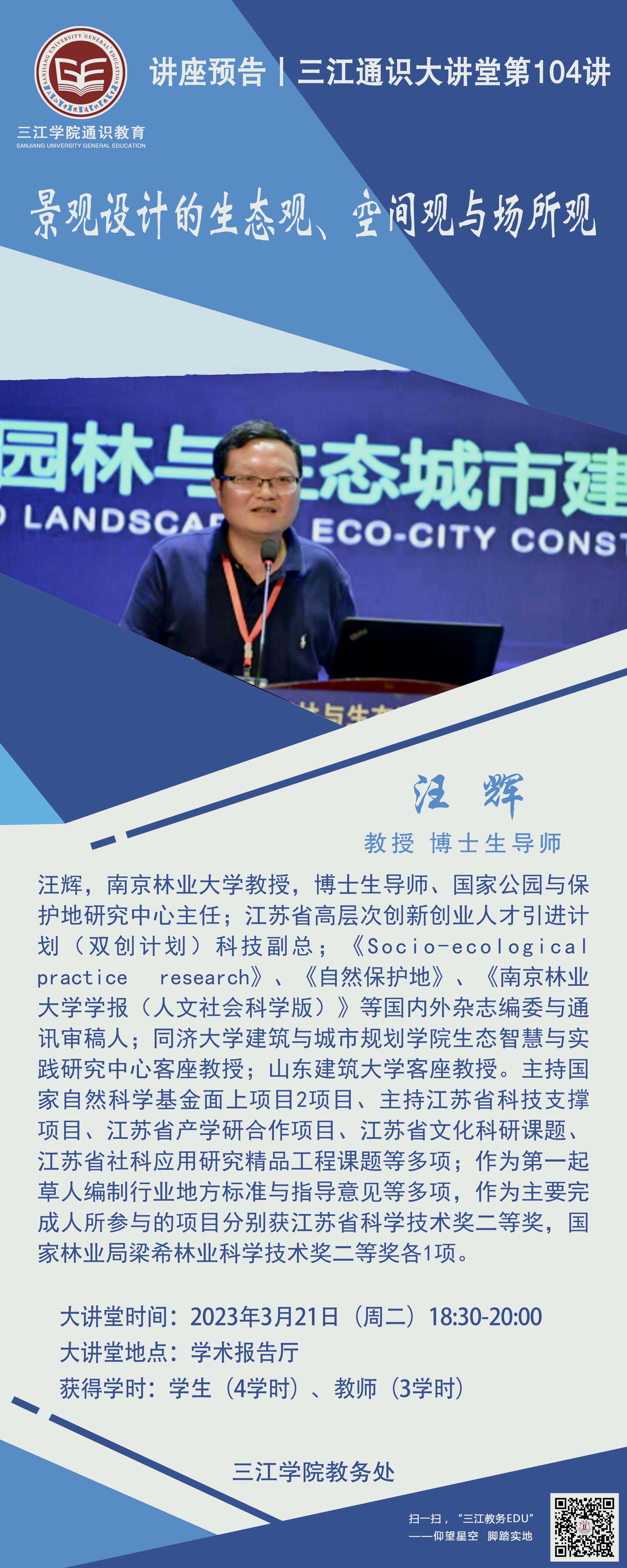 大讲座报名方式:(1)手机端:超星学习通—点击上方首页-选择三江学院(通识教育平台)-选择通识活动——选择讲座活动——选择三江通识大讲堂第104讲——点击“报名参与”;(2)电脑端:打开链接https://sjuts.mh.chaoxing.com/——下拉到通识活动——选择讲座活动——选择三江通识大讲堂第104讲——点击“报名参与”。