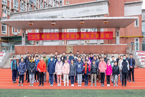 3月25日下午,校工会、关心下一代工作委员会、体育部联合举办的首届教职工子女体能训练营在校田径场开营,全校近六十位教职工子女参训。体育部主任薛雨平、关工委常务副主任郭彬、体育部副主任饶日忠出席开营仪式。