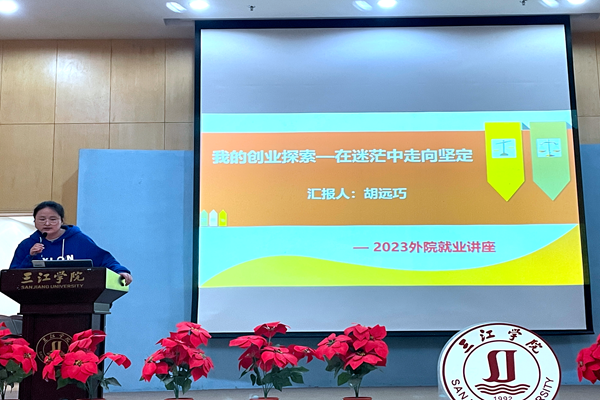 4月17日,校友会办公室和外国语学院联合在学术报告厅举办了三江学院校友讲坛首场线下讲座。本次讲座邀请了外国语学院2017级毕业生、学向勤教育、躬自厚教育创始人胡远巧同学,向与会师生分享创业的心路历程,为未来发展提供参考与借鉴。讲座由三江学院校长助理、校友会办公室主任王勇教授主持。校友会办公室全体人员及外国语学院部分师生共同参加了此次讲座。