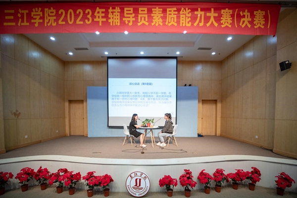 5月5日,三江学院辅导员素质能力大赛决赛在学术报告厅进行。校党委常务副书记、副校长周更生,南京医科大学学生工作部部长林炜,金陵科技学院学生处处长汪如春,南京邮电大学外国语学院党委副书记、副院长高艳丽(第八届江苏高校辅导员素质能力大赛一等奖获得者),南京科技职业学院学工处副处长魏强担任大赛评委。各学院(校区)学工书记、副书记,全体辅导员和学生发展与服务中心有关人员全程观摩了比赛。