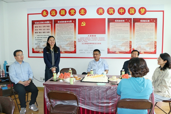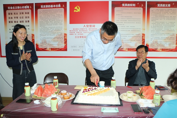 5月6日,高等职业技术学院(以下简称“高职院”)全体老师们欢聚在东校区406会议室,开展2023年“美妙‘食’光,欢聚共赏”冷餐会暨年度生日会活动。三江学院副校长仇存进、工会主席杨业琴莅临东校区,与全院所有老师共同度过了一段美好“食”光。本次活动由高职院党总支书记沈爱军主持。