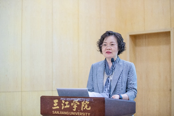 王芳教授致欢迎词。她对谢亿民院士在百忙之中抽身前来为与我校师生作高端学术报告表示感谢,并向与会师生介绍了谢亿民院士取得的杰出成就。