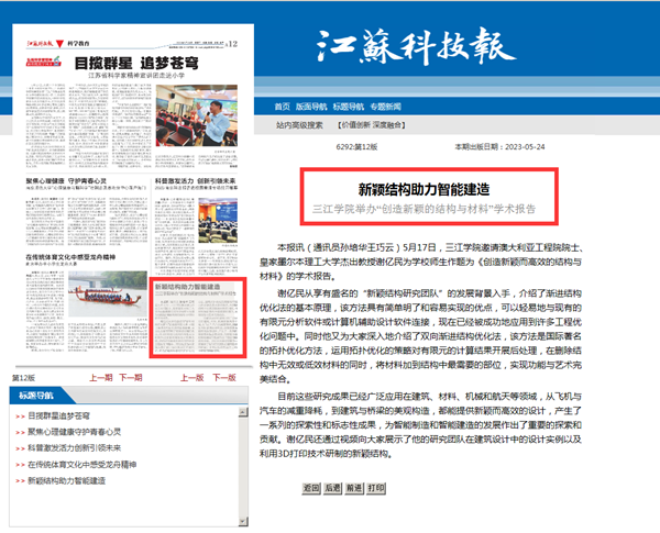 三江学院举办“创造新颖的结构与材料”学术报告 |