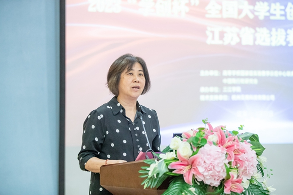 王芳表示,在大赛十周年之际我校有幸承办赛事搭建了与省内各大高校深度交流的平台,她对赛事组委会给予我校的充分信任表示感谢。她指出,三江学院作为全国首批、江苏省首家民办本科高校,既是各项教育政策的受益者,也是教育政策勇敢探索者,因此学校过去三十年的发展史就是一部精彩的民办高等教育创业史。同时,学校一直以来都非常重视将创新创业教育融入人才培养全过程,为此构建了以提升学生的社会责任感、创新精神、创业意识和创业能力为核心,以改革人才培养模式和教学模式为重点,面向全体、分类施教、结合专业、强化实践的“555”创新创业教育体系,并取得良好成效。