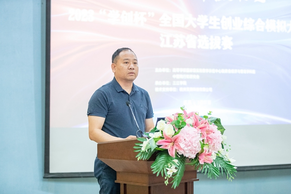 江苏大学管理与创业虚拟仿真实验中心主任张海斌作为指导教师代表发言
