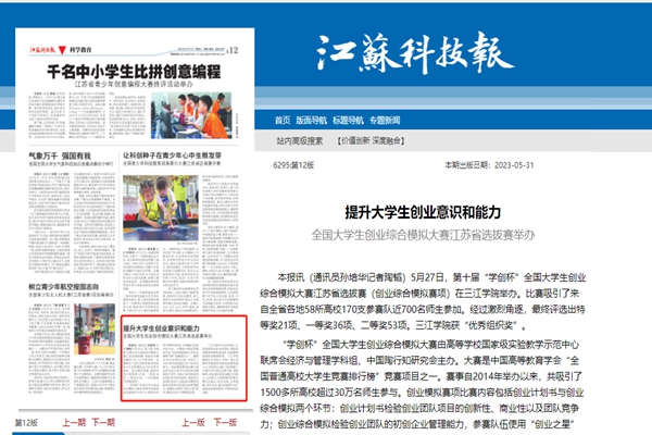 “参赛队伍需要在销售音响、销售监控、销售机器人这3个题目中随机抽取一个,5个小时时间里,使用《创业之星》软件,模拟企业4 个季度的运营,通过盈利、财务、市场、投资、成长5部分分数之和决出综合表现分数。”参赛选手、三江学院广告学大二学生邹和彧介绍,此次江苏省抽到的题目是销售音响。他们设计了6款产品,消费群体囊括了商务人士、公司白领、青年人群体和老年人群体,一二三四季度,他们的销售额节节攀升,分别是200多单、700多单、1000多单和1800多单。“市场在不断变化,我们根据市场情况,通过分析数据等不断调整销售方案,综合评判,取得了理想的综合表现分数。”综合前期提交的计划书,他们团队最终取得了特等奖的好成绩。 “比赛锻炼了我的沟通能力、临场应变能力,对时间的把控能力等等。”邹和彧说,因为比赛有严格的时间限制,这对参赛者的心态要求也很高,“通过比赛,我成长了很多,收获了很多。” 三江学院王芳副校长介绍,三江学院作为全国首批、江苏省首家民办本科高校,既是各项教育政策的受益者,也是教育政策勇敢探索者,学校过去三十年的发展史就是一部精彩的民办高等教育创业史。 基于学校与生俱来的创新创业基因,学校一直以来非常重视创新创业教育,于2017年8月成立创新创业学院,在此基础上,利用自身区位优势,现已联合国家级高新区-中国(南京)软件谷等3家单位共建成立了“三江学院大学生创新创业实践教育中心”。学校将创新创业教育融入人才培养全过程,遵循创新创业教育教学规律和人才成长规律,以提升学生的社会责任感、创新精神、创业意识和创业能力为核心,以改革人才培养模式和教学模式为重点,构建了面向全体、分类施教、结合专业、强化实践的“555”创新创业教育体系。并为此在制度和政策上基于充分支持和保障。在2023年2月,中国高等教育学会发布的2018-2022年全国普通高校学科竞赛榜单上,三江学院位列2018-2022年全国民办及独立学院大学生竞赛榜单第11名,位列全国新建本科院校大学生竞赛榜单第49名。 通讯员 孙培华 徐贤 记者 谈洁 寻找“创业之星”!这场创业综合模拟大赛在三江学院落下帷幕媒体:交汇点 日期:2023年5月28日 链接:https://jnews.xhby.net/v3/waparticles/7fda002d5708436da67a57947ffc4b06/0/ZMp815dw5gYifsEj/1&app= 交汇点讯 5月27日,第十届“学创杯”全国大学生创业综合模拟大赛江苏省选拔赛(创业综合模拟赛项)在三江学院成功举办。此次大赛共吸引了来自全省各地 58所高校,170支参赛队、近700名师生参加,经过5个小时的激烈角逐,大赛最终评选出了21项特等奖,36项一等奖和53项二等奖。