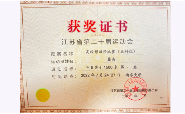 戴禹同学将在今年7月份参加全国大学生田径锦标赛,小江在此祝愿戴禹同学能够再创佳绩,为校争光!