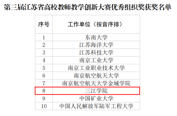 第三届江苏省高校教师教学创新大赛暨第三届全国高校教师教学创新大赛江苏省选拔赛决赛获奖名单出炉,我校有2名教师进入决赛,其中,外国语学院陶潇婷《笔译I》课程获新文科副高组特等奖。同时,我校荣获“优秀组织奖”。