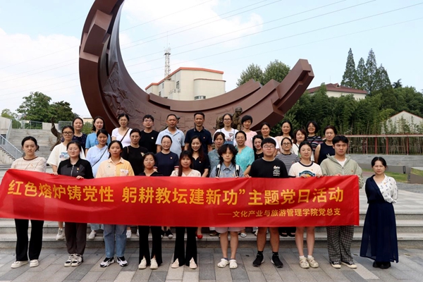 在第39个教师节来临之际,结合即将在全校开展的学习贯彻习近平新时代中国特色社会主义思想主题教育,9月7日下午,文化产业与旅游管理学院党总支组织师生党员前往江苏省党史教育基地——梅钢工业文化旅游区开展“红色熔炉铸党性,躬耕教坛建新功”主题党日活动。