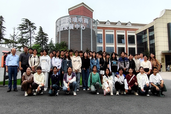 在加快推进应用型本科建设的背景下,为进一步提高跨境电商专业学生的专业认知水平,更好地聚焦职场需求,提前谋划职业发展,10月27日,外国语学院组织2023级跨境电商专业全体学生前往南京市江宁区长三角跨境电商创新发展中心参观学习。本次活动由外国语学院院长郑玉琪带队,副院长楼毅,总支副书记储吉,院长助理兼英语系主任何晴霞,专业负责人李玉萍和秦臻,英语系副主任丰瑾,辅导员刘盆美,专业教师陈婷等一同前往,陪同参观的还有三江学院客座教授、江苏宗方科技有限公司总经理蒋海。