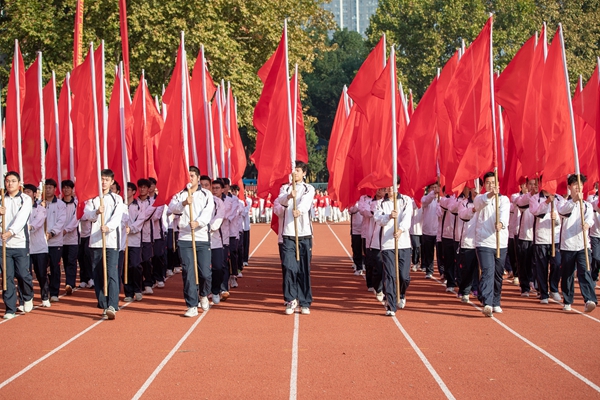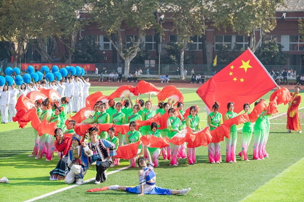 随后是精彩的开幕式文艺表演。体育部劲舞祥龙行云流水,炫酷兵道弘扬传统武术文化,外国语学院的《我的未来式》舞蹈表演充满青春的朝气与活力,文学与新闻传播学院的《加油amigo》的舞蹈表演展现自信的魅力,建筑学院的《舞进新时代》用渐变色的扇子寓意红色的火炬象征光明和希望,东山校区身着少数民族服饰表演《踏歌起舞中国》寓意着让民族团结之花绚丽绽放。