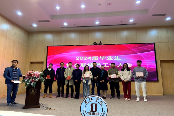 11月8日,三江学院2024届毕业生校友联络员工作大会在学术报告厅顺利召开。三江学院校长助理、校友会办公室主任王勇教授,校友会办公室副主任吴朝军,校友会办公室科长王益明,各二级学院分管校友工作负责人、2024届全体联络员参加了会议。会议由吴朝军主持。