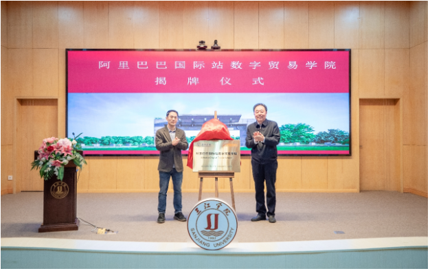 交汇点讯 11月9日,“阿里巴巴国际站数字贸易学院”揭牌典礼在三江学院学术报告厅隆重举行。